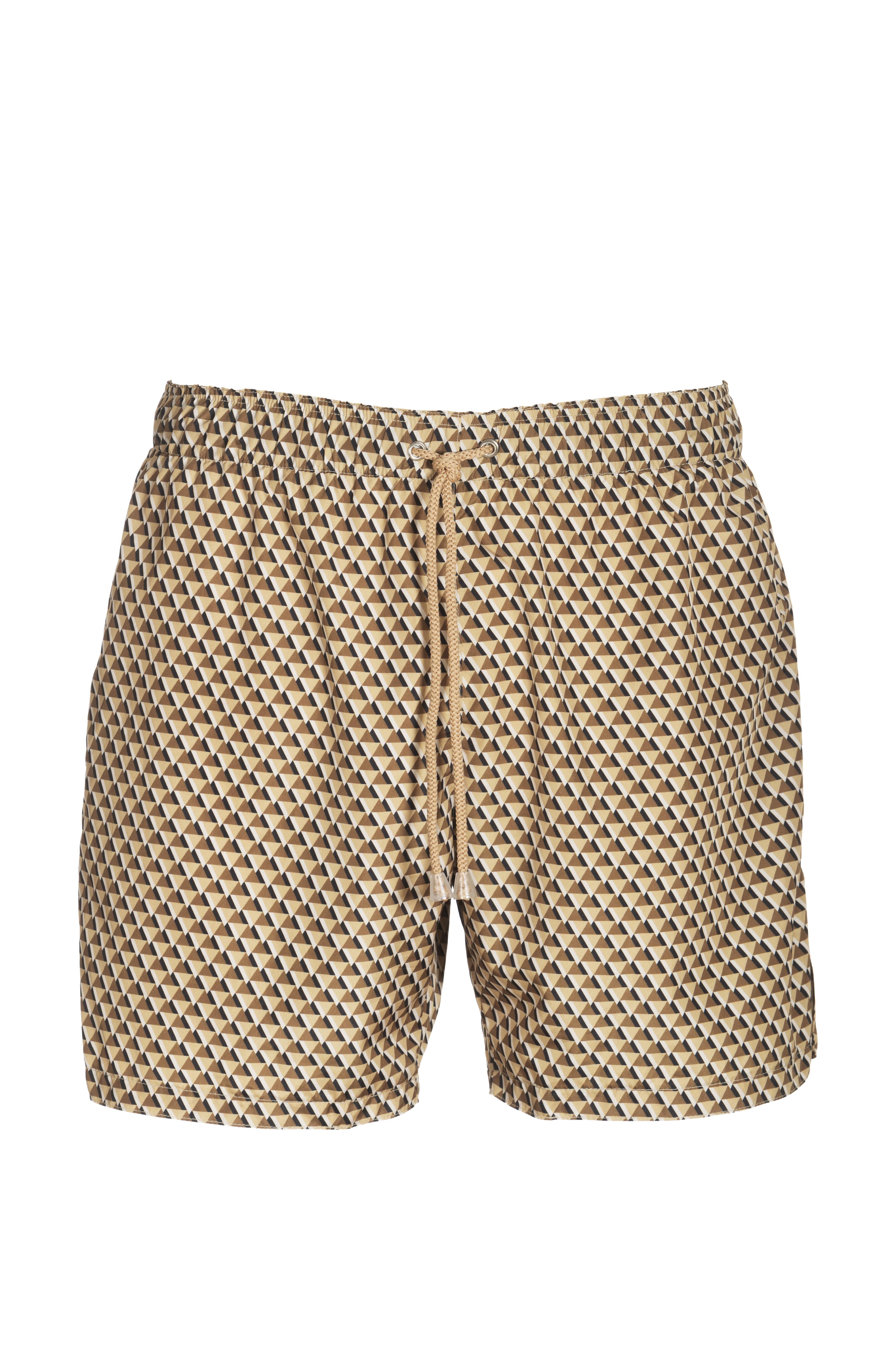 Boxer da mare in tonalità neutre beige e marrone, realizzato in tessuto tecnico ad asciugatura rapida. L'interno in rete bielastica offre comfort e supporto, ideale per un look elegante e rilassato in spiaggia.