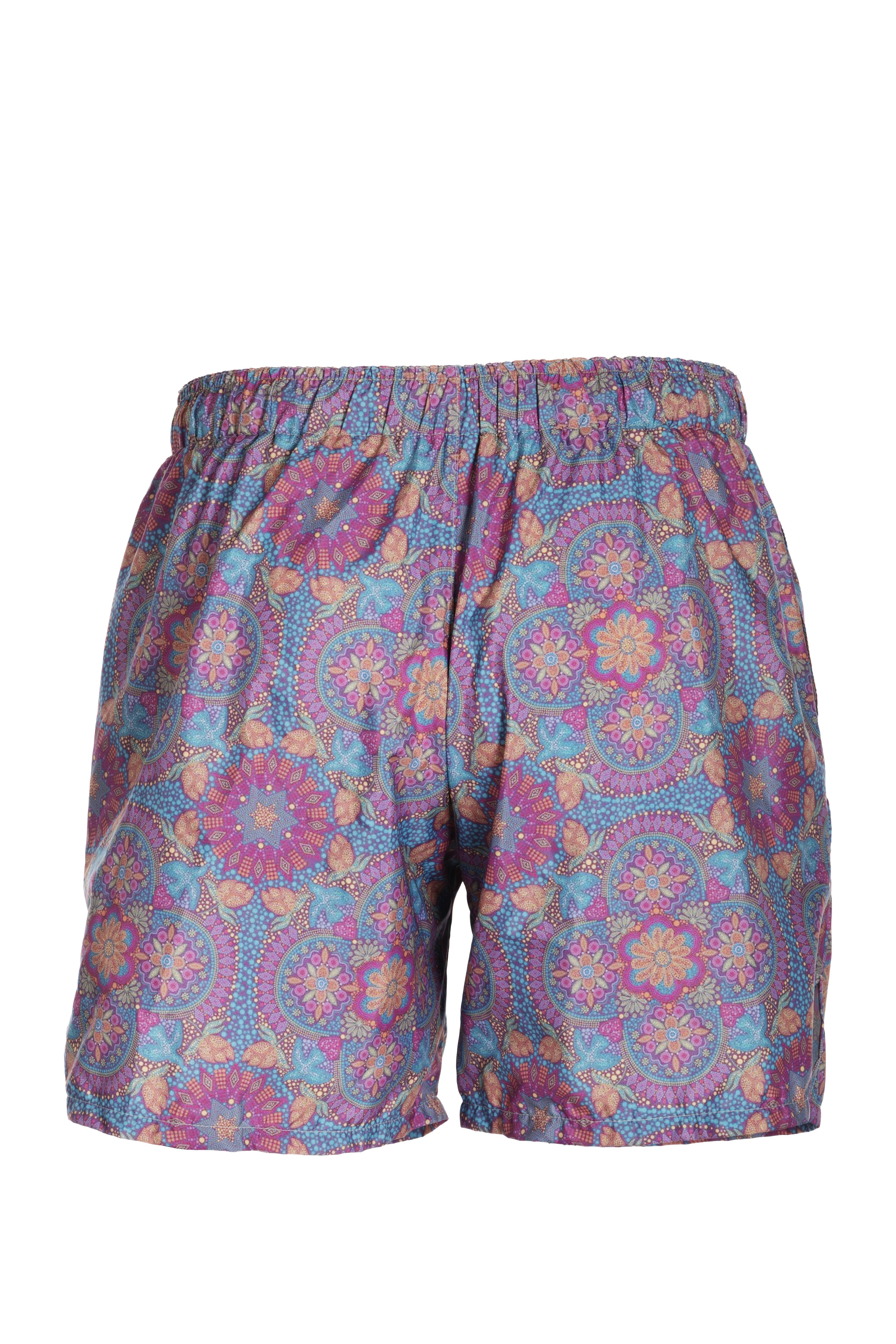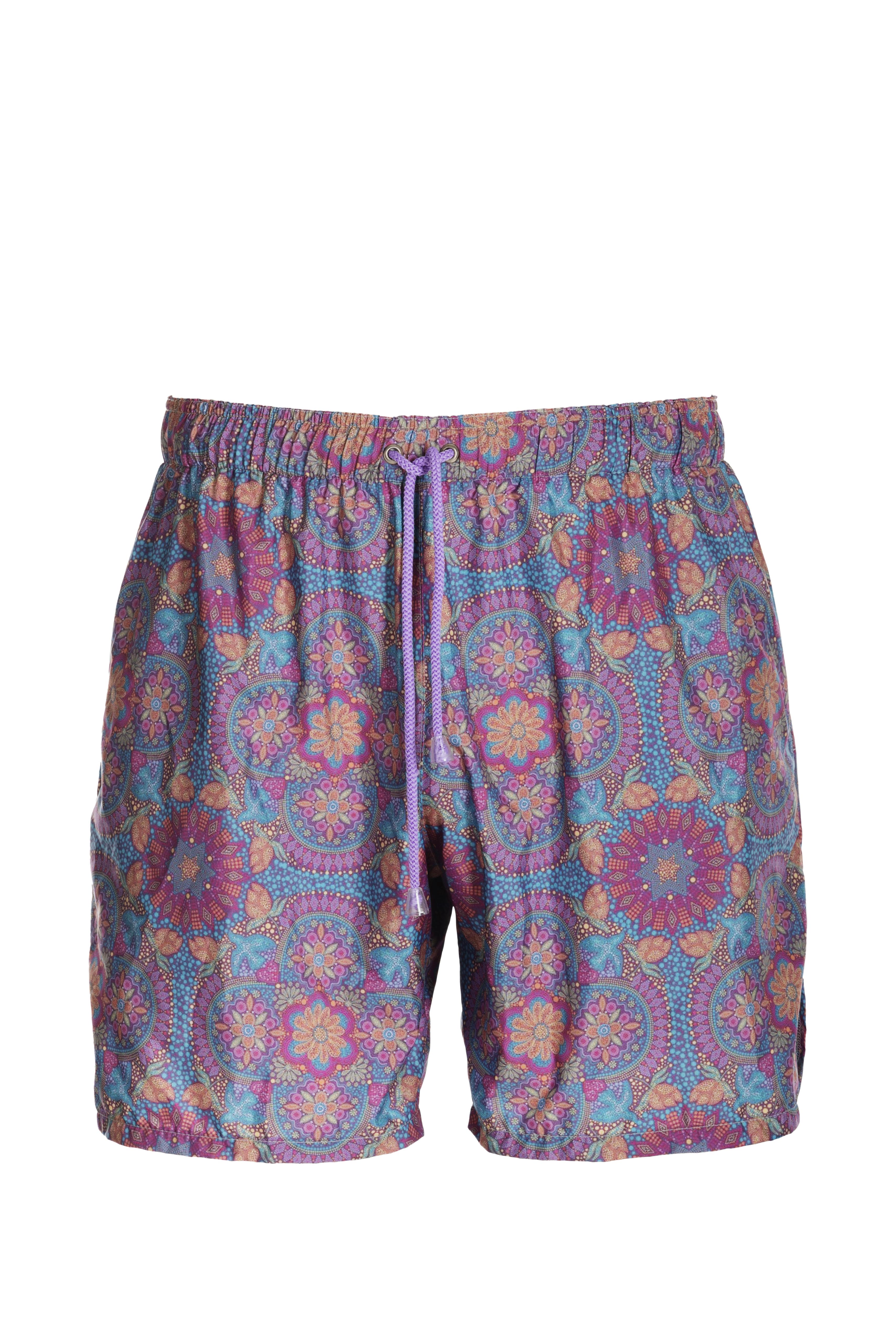 Boxer da mare con stampa ispirata alle ceramiche mediterranee, realizzato in tessuto tecnico ad asciugatura rapida. L'interno in rete bielastica garantisce comfort e libertà di movimento, rendendolo perfetto per le giornate estive.